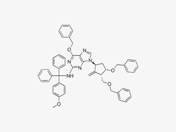 | 英文名称: | 6-(Benzyloxy)-9-((1S,3R,3S)-4-(benzyloxy)-3-(benzyloxymethyl)-2-methylenecyclopentyl)-N-((4-methoxyphenyl)diphenylmethyl)-9H-purin-2-amine |
